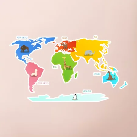 Svetové kontinenty s názvami a zvieratkami