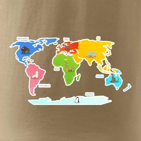 Tričko pre učiteľa zemepisu alebo milovníka cestovania, na ktorom j mapa sveta. Máš rád cestovanie? Kúp si toto tričko a môžeš si odškrtnúť, kde všade si už bol. na tričko budeš mať všetky kontinenty - Európa, Ázia, Afrika, Sverná a Južná Amerika a tiež Austrália. S mapou sveta vždy po ruke môžeš vždy uskutočniť akékoľvek dobrodružné výpravy a už sa nikdy nestratíš!