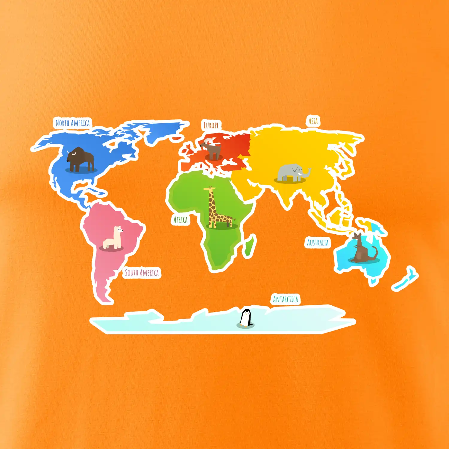 Svetové kontinenty s názvami a zvieratkami