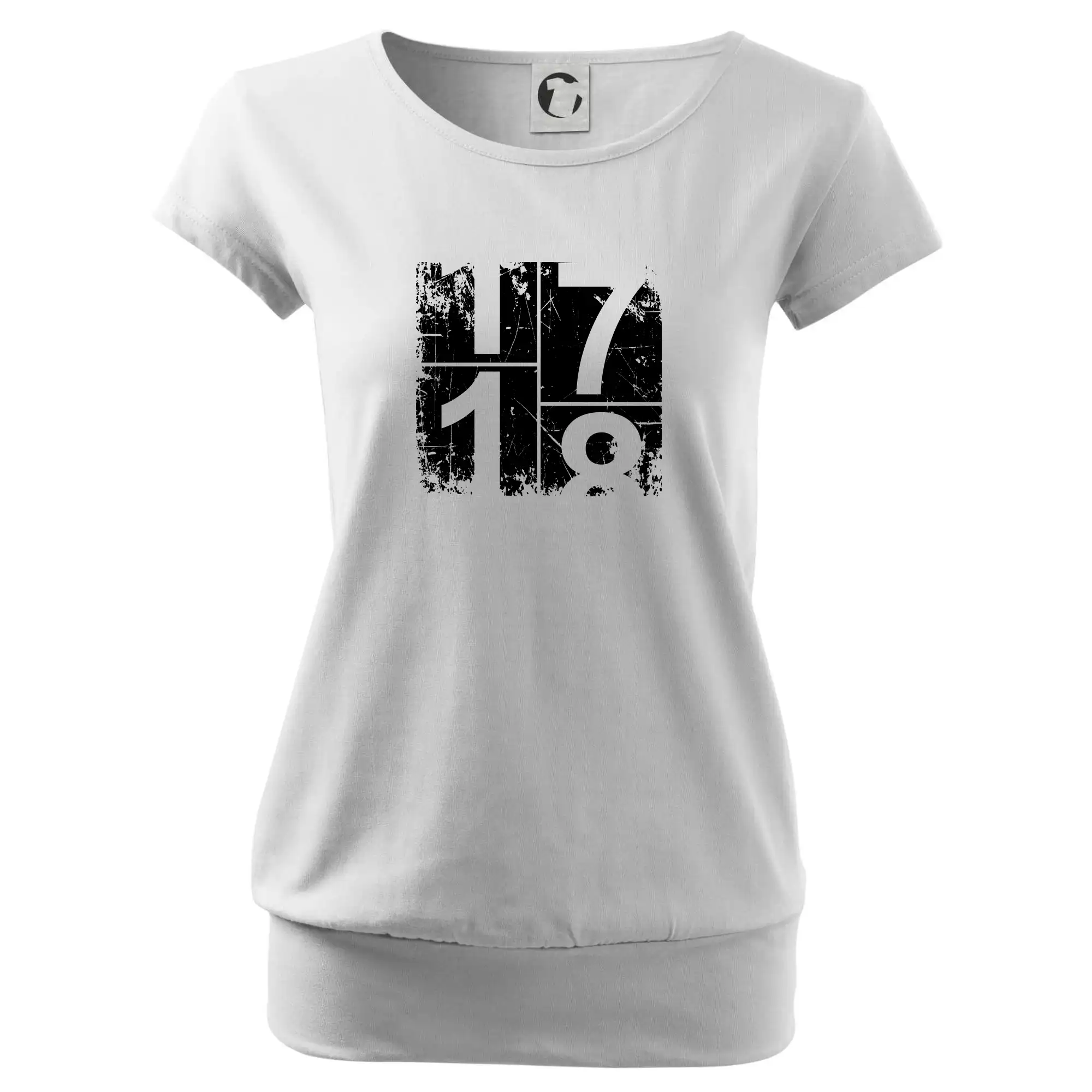 Trendové dámske tričko s veľmi krátkym rukávom, voľnejšieho strihu, v dolnom kraji všité do širokého lemu. Okrúhly priekrčník s úzkym lemom zo zhodného materiálu.