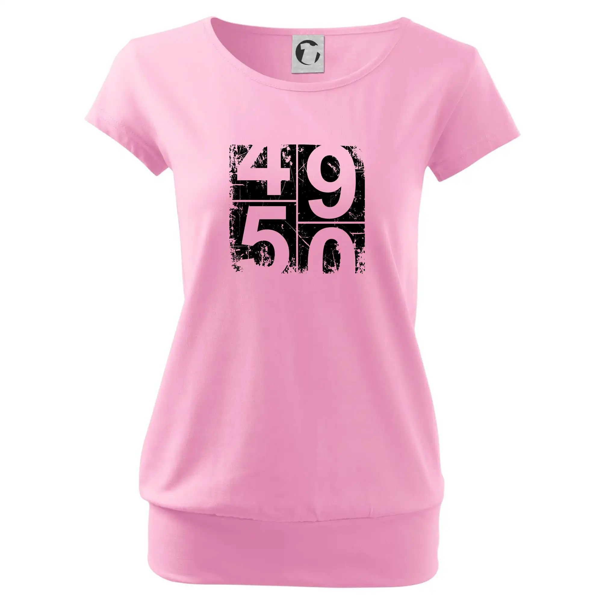 Trendové dámske tričko s veľmi krátkym rukávom, voľnejšieho strihu, v dolnom kraji všité do širokého lemu. Okrúhly priekrčník s úzkym lemom zo zhodného materiálu.