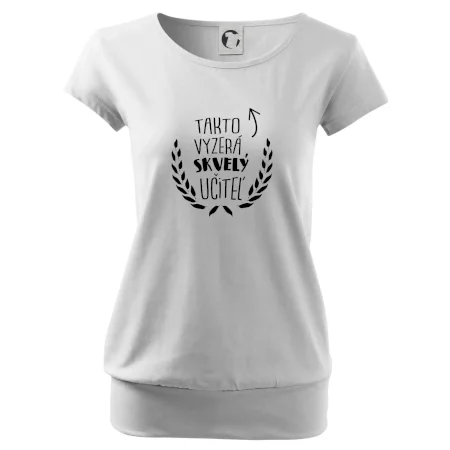 Trendové dámske tričko s veľmi krátkym rukávom, voľnejšieho strihu, v dolnom kraji všité do širokého lemu. Okrúhly priekrčník s úzkym lemom zo zhodného materiálu.