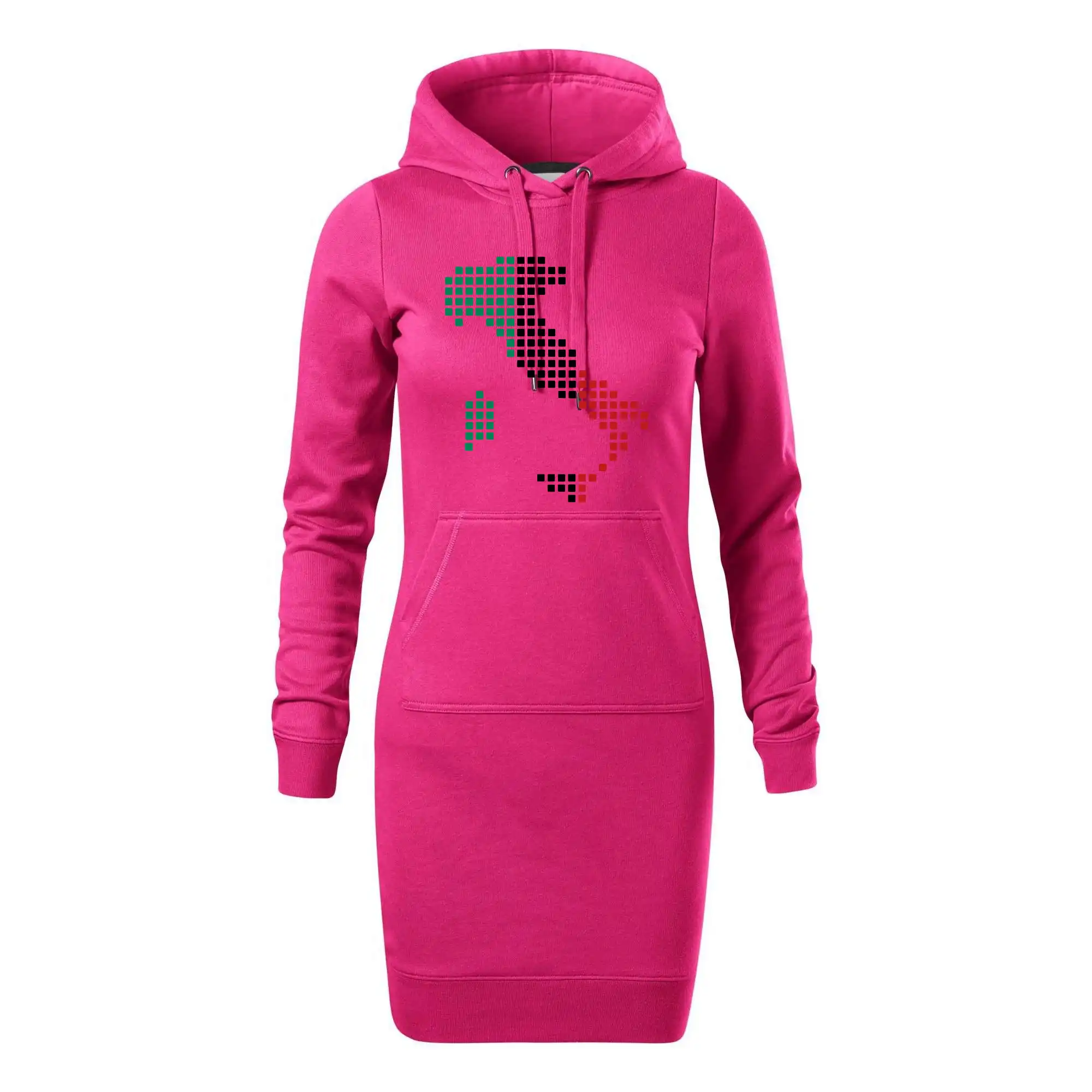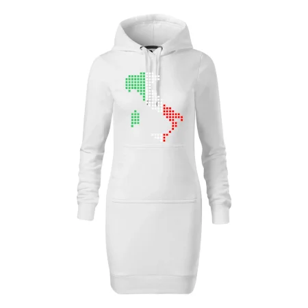 Dámske mikinové šaty MALFINI Snap 419 sú ideálnou voľbou pre ženy, ktoré hľadajú pohodlný a štýlový kúsok na voľný čas alebo každodenné nosenie. Ľahko vypasovaný strih s bočnými švami podčiarkuje ženskú siluetu, zatiaľ čo kapucňa s podšívkou a sťahovacou šnúrkou dodáva ležérny vzhľad. Šaty majú dĺžku nad kolená a sú vybavené našitým vreckom v štýle „klokanky“. Materiál je mäkký a príjemný na dotyk grâce à smesi bavlny a polyesteru s nepočesanou vnútornou stranou.