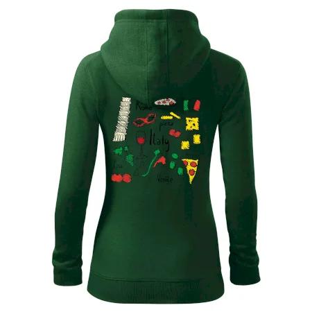 Dámska mikina MALFINI Trendy Zipper 411 spája moderný vzhľad s každodennou praktickosťou. Jej ľahko vypasovaný strih s bočnými švami zvýrazňuje ženskú siluetu, zatiaľ čo celoprepínací zips a kapucňa so sťahovacou šnúrkou dodávajú ležérny nádych.