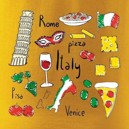 Tričká pre milovníkov Talianska. Vyber si motív s typickými symbolmi cestovinovej zeme.