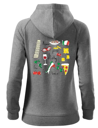 Dámska mikina MALFINI Premium Voyage 451 z prémiovej 100% bavlny (výplňková pletenina, vnútorná strana nepočesaná) ponúka ženský strih, priedušnosť a pohodlie pre voľný čas, šport i cestovanie.