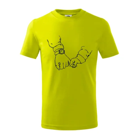 Detské tričko strednej gramáže s bočnými švami. Úzky priekrčník s prídavkom 5% elastanu. Vnútorná časť zadného priekrčníka začistená tkanou páskou. Spevnený ramenný šev.