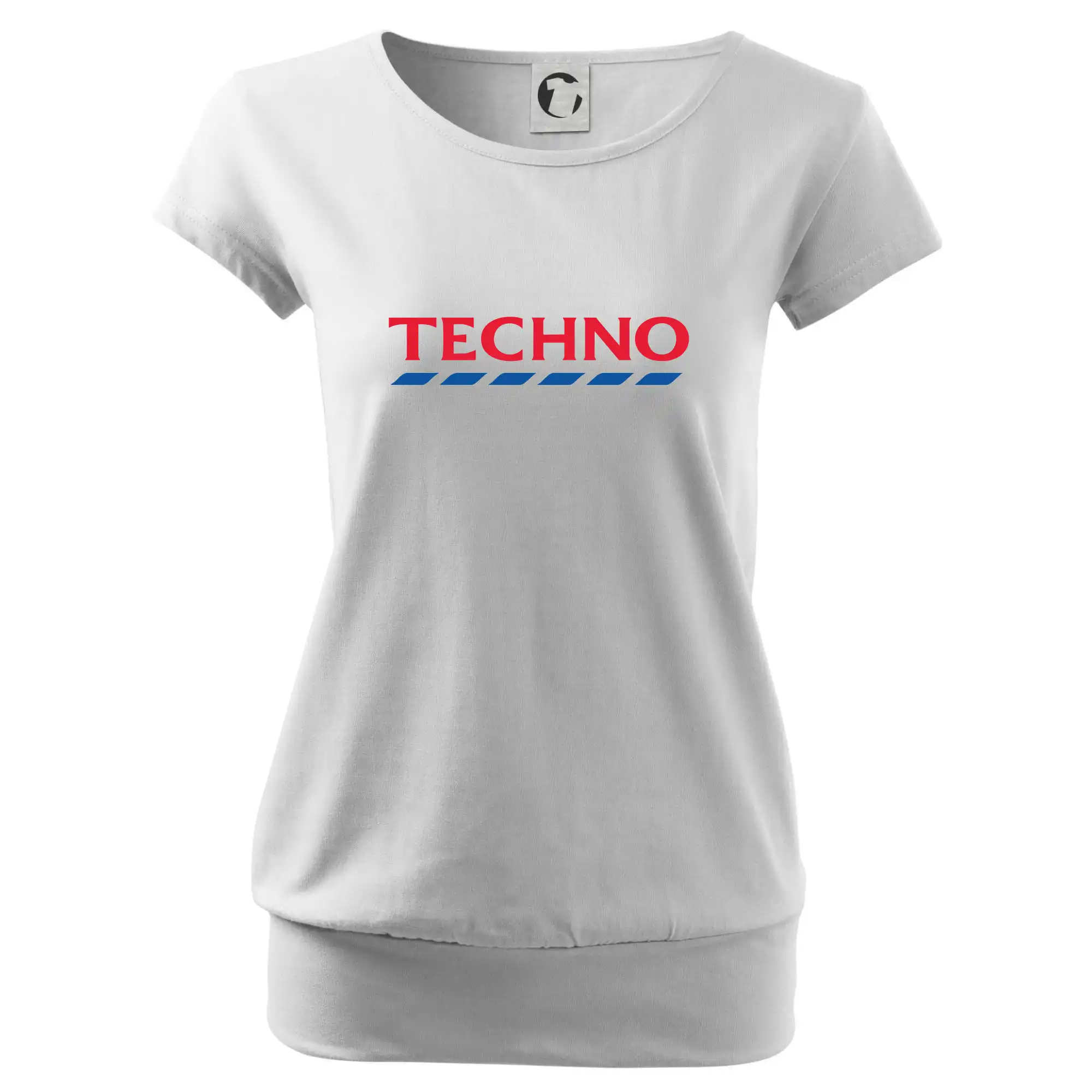Trendové dámske tričko s veľmi krátkym rukávom, voľnejšieho strihu, v dolnom kraji všité do širokého lemu. Okrúhly priekrčník s úzkym lemom zo zhodného materiálu.