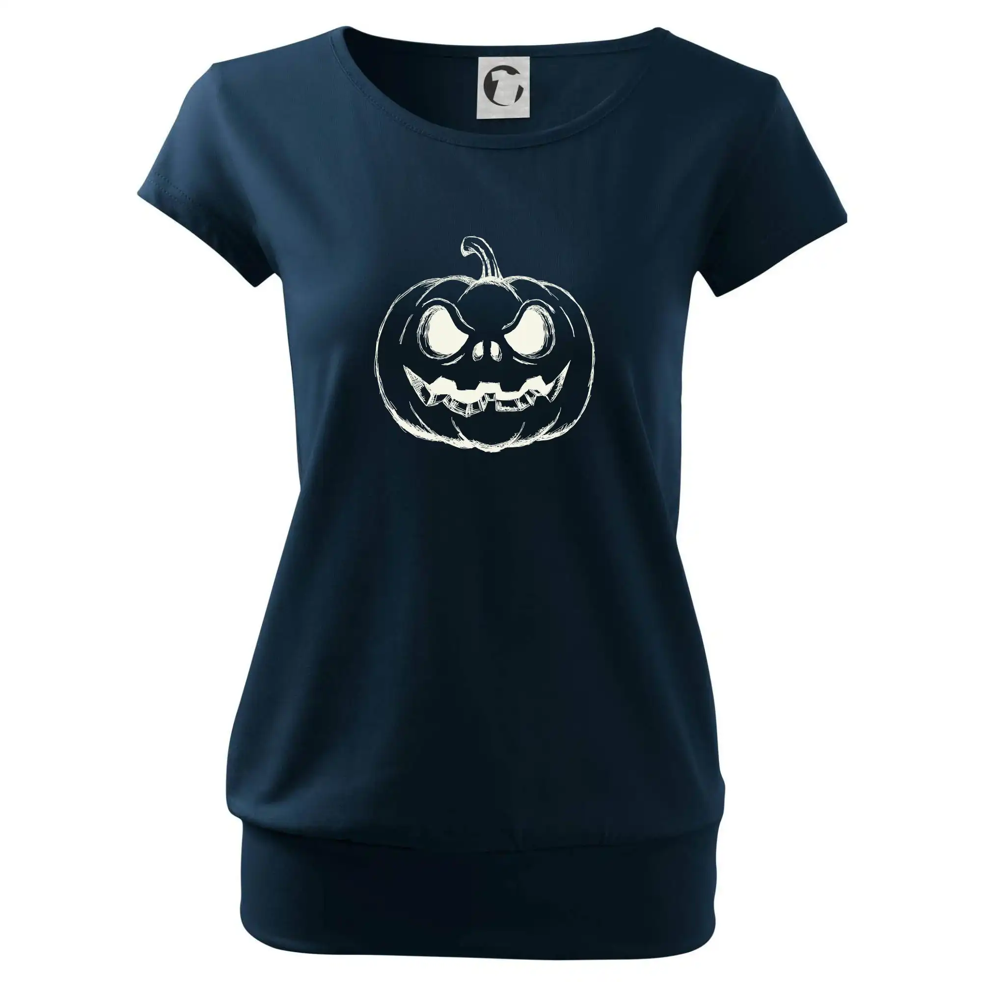 Trendové dámske tričko s veľmi krátkym rukávom, voľnejšieho strihu, v dolnom kraji všité do širokého lemu. Okrúhly priekrčník s úzkym lemom zo zhodného materiálu.