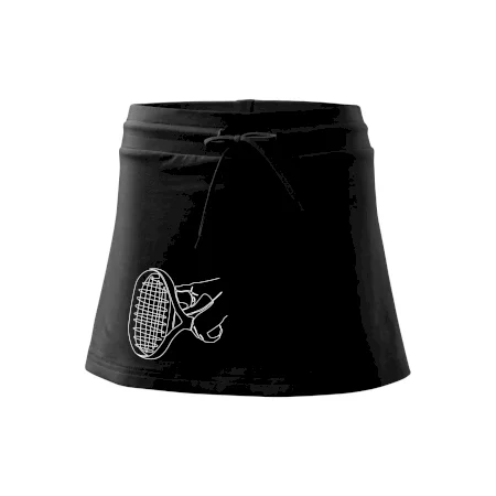 Dámska kraťasová sukňa MALFINI Two in One 604 je perfektnou kombináciou sukne a šortiek, ideálna na šport, voľný čas alebo ležérne nosenie. Vďaka prídavku elastanu si sukňa zachováva tvar a ponúka pohodlie pri pohybe. Krátky strih do tvaru „A“ a široký elastický pás so sťahovacou šnúrkou zabezpečujú voľnosť a prispôsobenie.