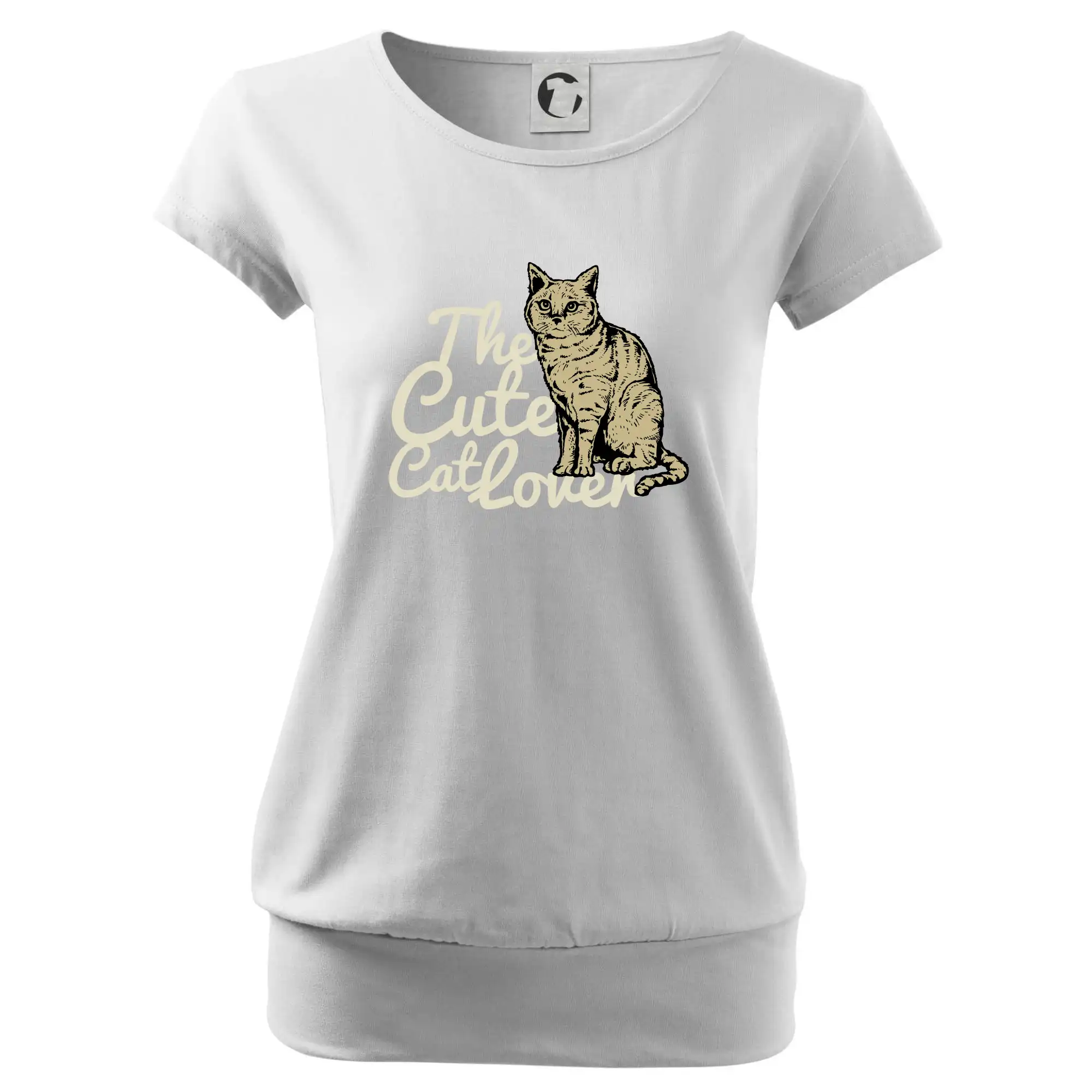 Trendové dámske tričko s veľmi krátkym rukávom, voľnejšieho strihu, v dolnom kraji všité do širokého lemu. Okrúhly priekrčník s úzkym lemom zo zhodného materiálu.