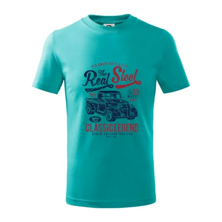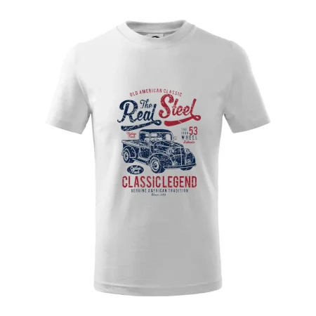 Detské tričko strednej gramáže s bočnými švami. Úzky priekrčník s prídavkom 5% elastanu. Vnútorná časť zadného priekrčníka začistená tkanou páskou. Spevnený ramenný šev.