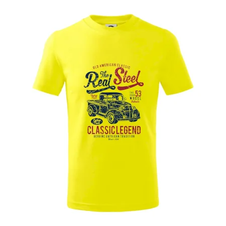 Detské tričko strednej gramáže s bočnými švami. Úzky priekrčník s prídavkom 5% elastanu. Vnútorná časť zadného priekrčníka začistená tkanou páskou. Spevnený ramenný šev.