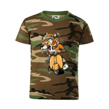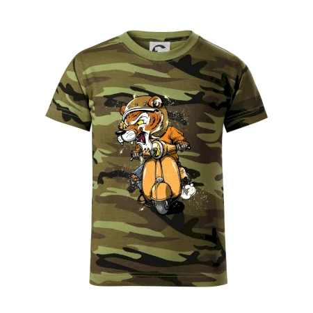 Tričko pre motorkára, na ktorom je tiger na skútri. Motorkárske tričko, kde je motorkár tiger, musí mať doma každý vášnivý motorkár. Tričko s tigromje vhodný darček pre motorkára.