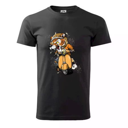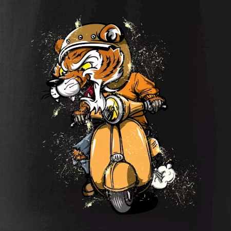 Tričko pre motorkára, na ktorom je tiger na skútri. Motorkárske tričko, kde je motorkár tiger, musí mať doma každý vášnivý motorkár. Tričko s tigromje vhodný darček pre motorkára.
