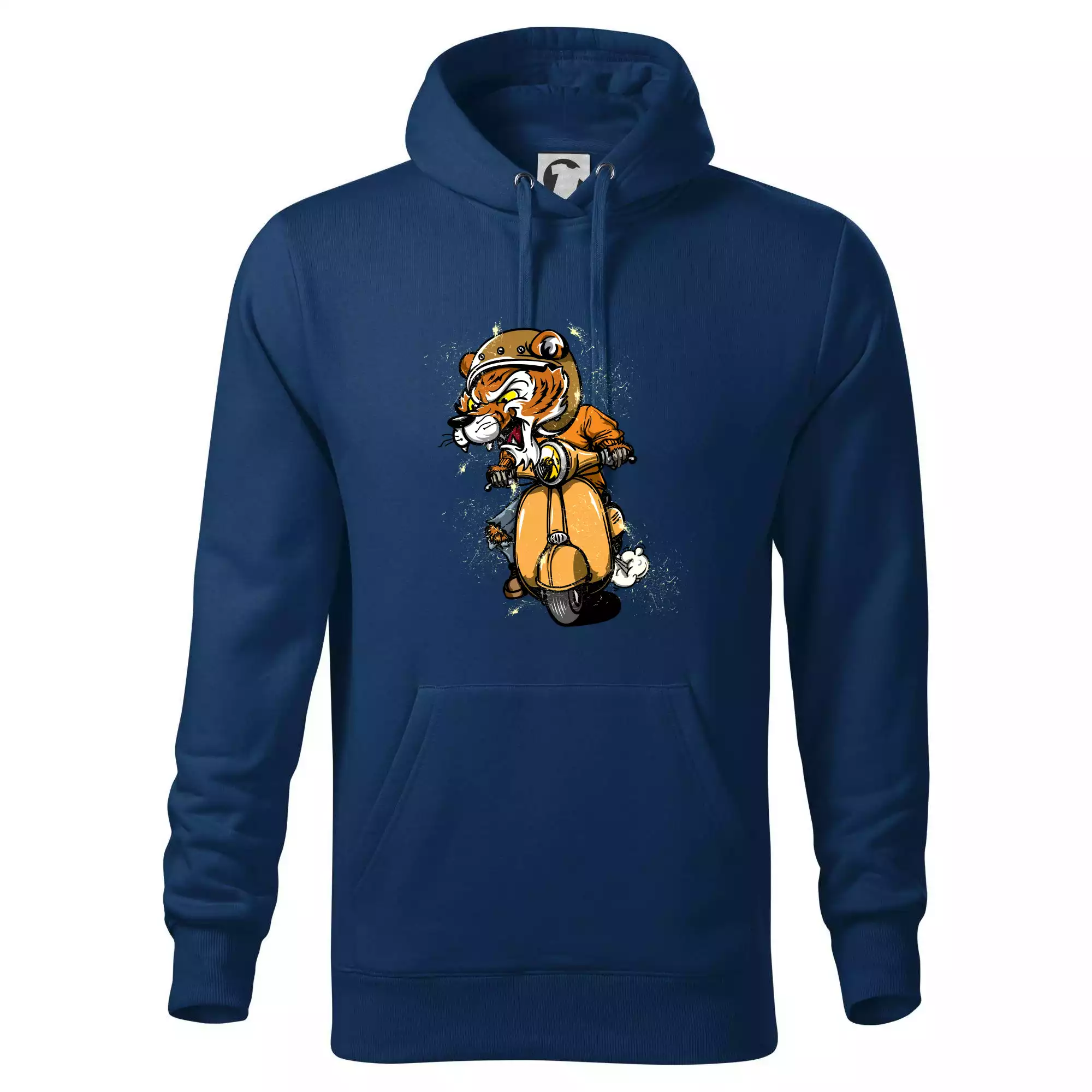 Tričko pre motorkára, na ktorom je tiger na skútri. Motorkárske tričko, kde je motorkár tiger, musí mať doma každý vášnivý motorkár. Tričko s tigromje vhodný darček pre motorkára.