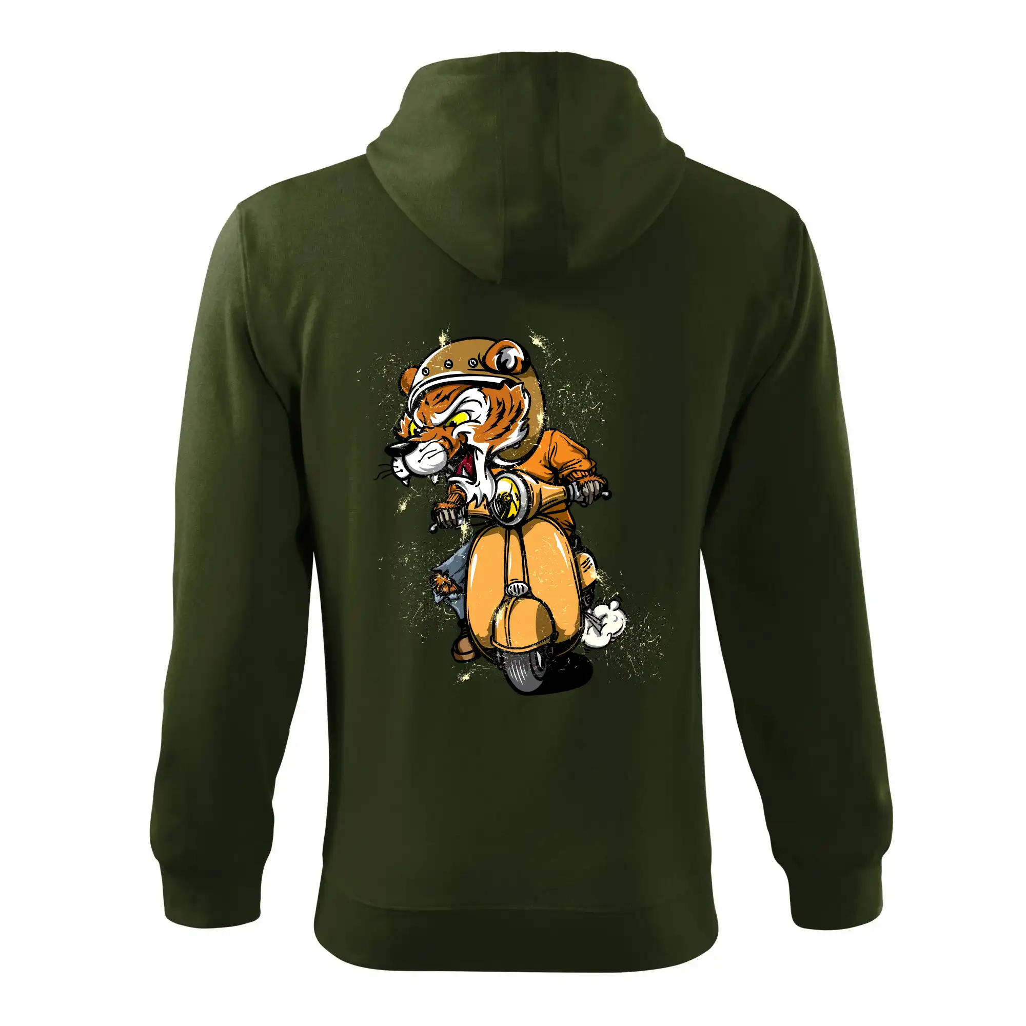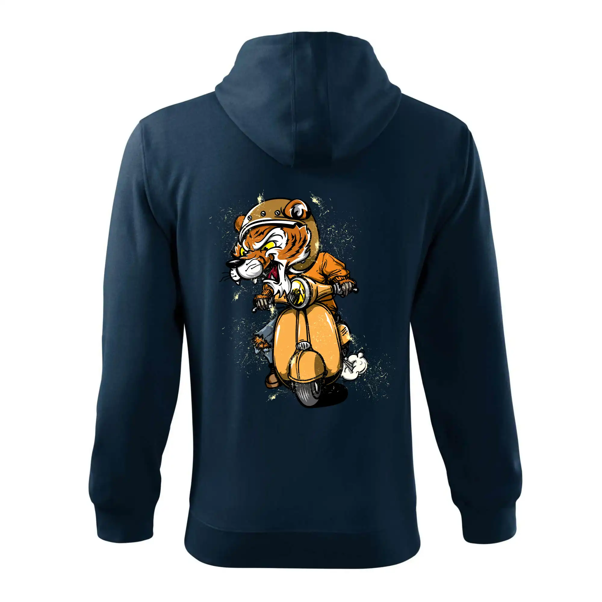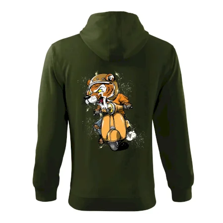 Tričko pre motorkára, na ktorom je tiger na skútri. Motorkárske tričko, kde je motorkár tiger, musí mať doma každý vášnivý motorkár. Tričko s tigromje vhodný darček pre motorkára.