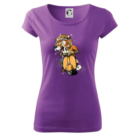 Tričko pre motorkára, na ktorom je tiger na skútri. Motorkárske tričko, kde je motorkár tiger, musí mať doma každý vášnivý motorkár. Tričko s tigromje vhodný darček pre motorkára.