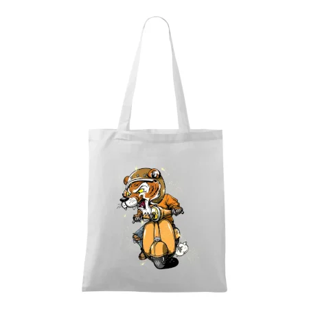 Tričko pre motorkára, na ktorom je tiger na skútri. Motorkárske tričko, kde je motorkár tiger, musí mať doma každý vášnivý motorkár. Tričko s tigromje vhodný darček pre motorkára.