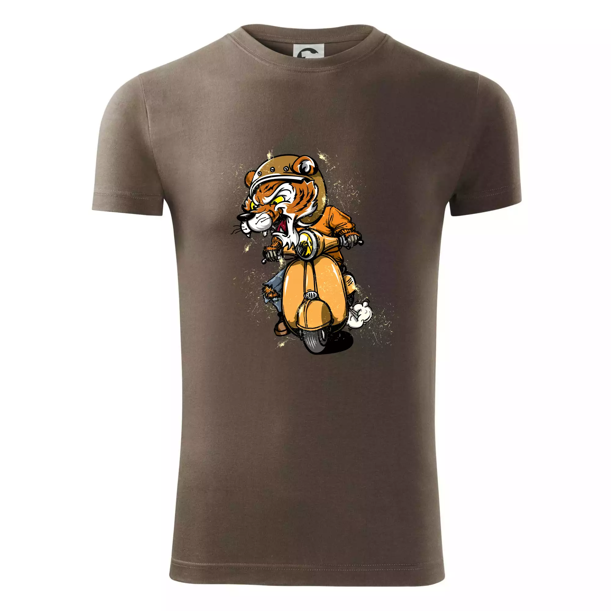 Tričko pre motorkára, na ktorom je tiger na skútri. Motorkárske tričko, kde je motorkár tiger, musí mať doma každý vášnivý motorkár. Tričko s tigromje vhodný darček pre motorkára.