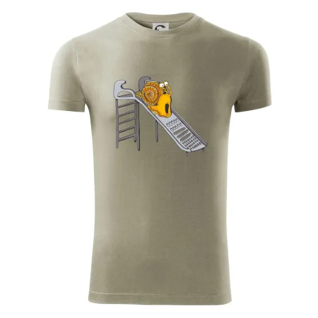 Pánske tričko s krátkym rukávom vyššej gramáže. Módne, priliehavý strih s bočnými švami. Úzky lem priekrčníka z rebrového úpletu s prídavkom 5% elastanu. Vnútorná časť zadného priekrčníku začistená páskou. Spevnený ramenný šev.