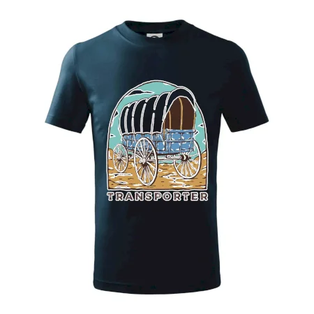 Detské tričko strednej gramáže s bočnými švami. Úzky priekrčník s prídavkom 5% elastanu. Vnútorná časť zadného priekrčníka začistená tkanou páskou. Spevnený ramenný šev.