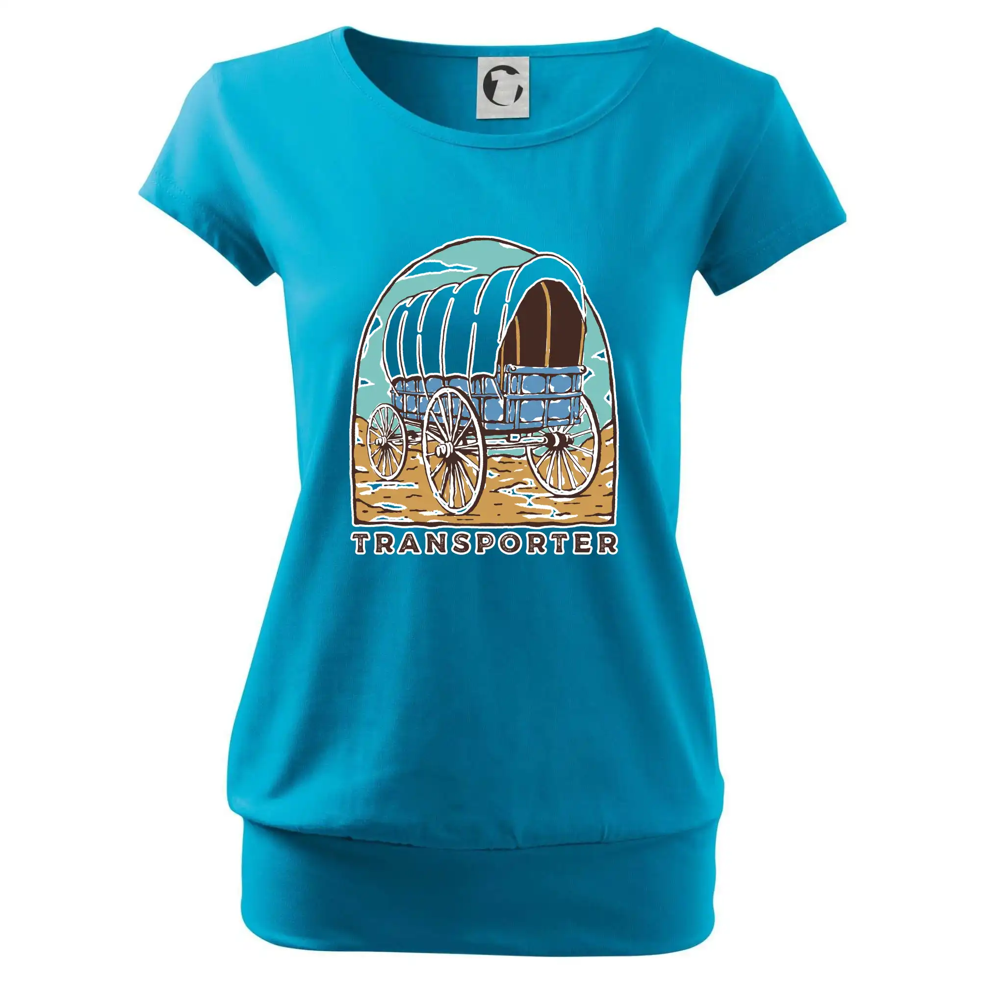 Trendové dámske tričko s veľmi krátkym rukávom, voľnejšieho strihu, v dolnom kraji všité do širokého lemu. Okrúhly priekrčník s úzkym lemom zo zhodného materiálu.