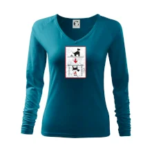 Tolerantnejšie priliehavý dámsky strih, ktorý je vhodný pre všetky typy postavy, ideálna dĺžka rukávov a konzervatívny výstrih zakončený rebrovaním, ktoré skvele drží tvar.