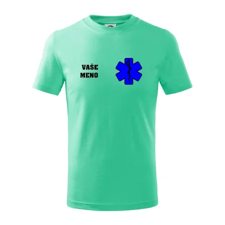 Detské tričko strednej gramáže s bočnými švami. Úzky priekrčník s prídavkom 5% elastanu. Vnútorná časť zadného priekrčníka začistená tkanou páskou. Spevnený ramenný šev.