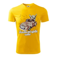 Vtipné tričko pre kuchára s nápisom "Trochu mi ušla ruka" s chilli papričkami. Pálivé papričky sa musia pridávať opatrne, niekedy sa to ale nepodarí a je ich v jedle toľko, že by to naštartovalo aj auto.