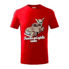 Vtipné tričko pre kuchára s nápisom "Trochu mi ušla ruka" s chilli papričkami. Pálivé papričky sa musia pridávať opatrne, niekedy sa to ale nepodarí a je ich v jedle toľko, že by to naštartovalo aj auto.