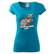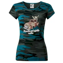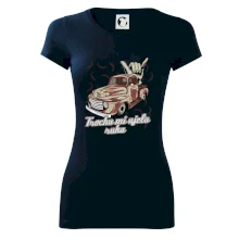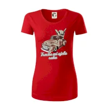 Vtipné tričko pre kuchára s nápisom "Trochu mi ušla ruka" s chilli papričkami. Pálivé papričky sa musia pridávať opatrne, niekedy sa to ale nepodarí a je ich v jedle toľko, že by to naštartovalo aj auto.