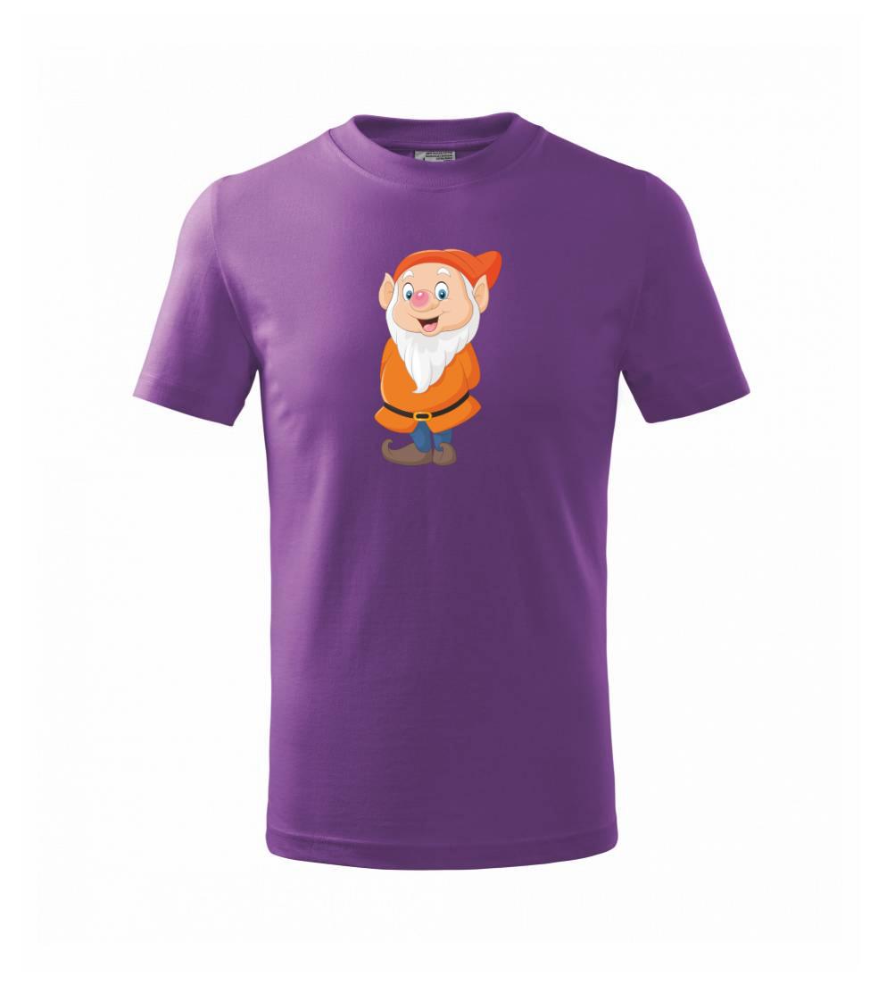 Detské tričko s trpaslíkom je vhodné pre milovníkov rozprávok. Oranžový trpaslík vyčaruje na detskej tvári nejeden úsmev. Vhodný darček pre dieťa, ktoré má rado rozprávku Snehulienka a sedem trpaslíkov alebo je jeho obľúbená postavička akýkoľvek rozprávkový škriatok.