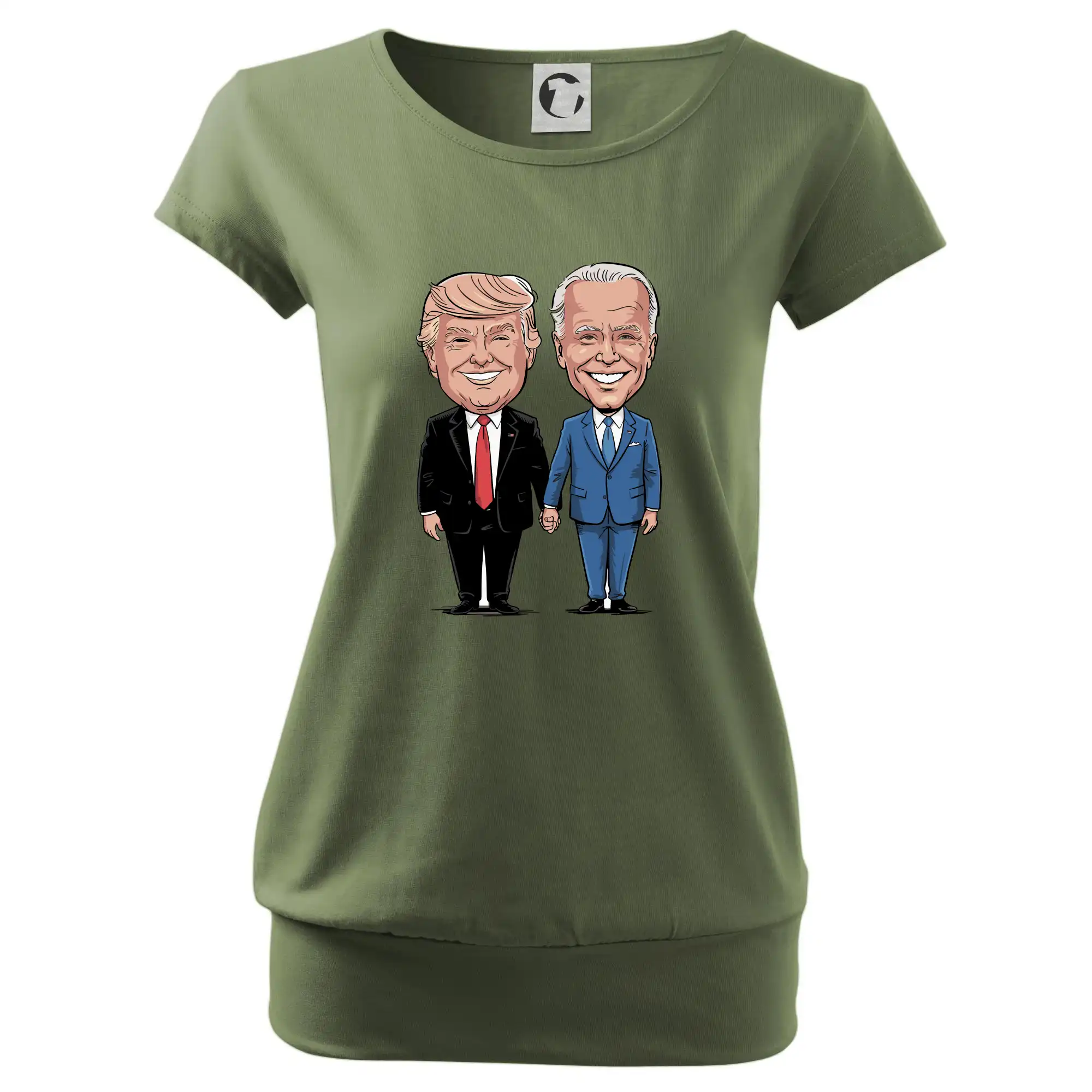 Trendové dámske tričko s veľmi krátkym rukávom, voľnejšieho strihu, v dolnom kraji všité do širokého lemu. Okrúhly priekrčník s úzkym lemom zo zhodného materiálu.