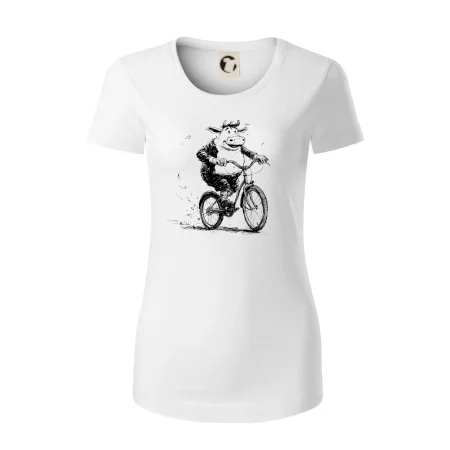 Tučná krava na bicykli