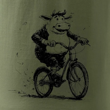 Tučná krava na bicykli
