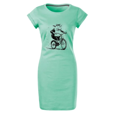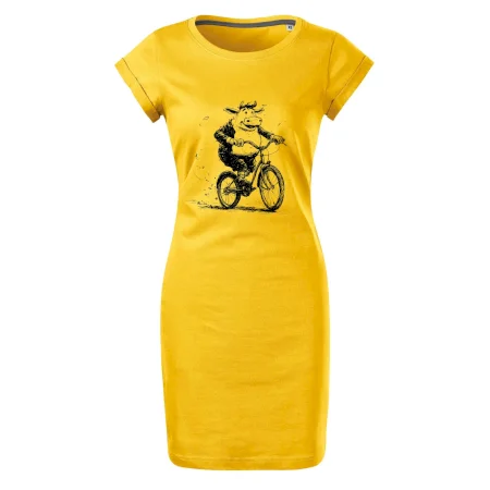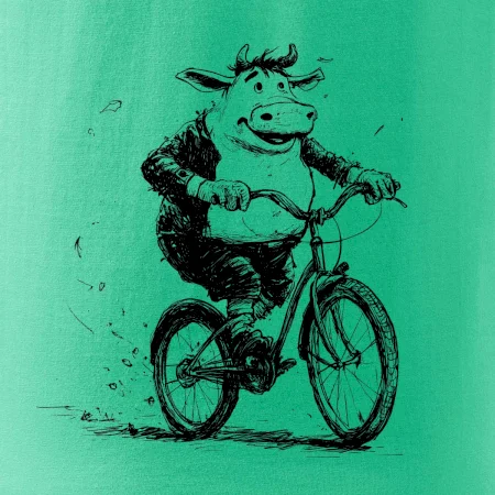 Tučná krava na bicykli