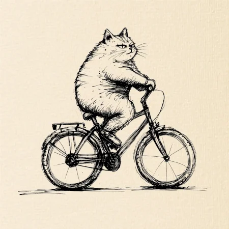 Tučná mačka na bicykli