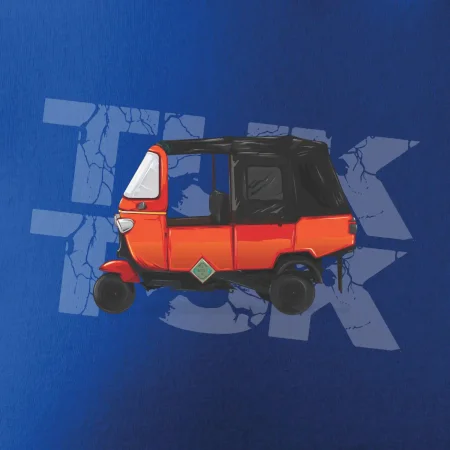 Tričko pre milovníkov cestovania s motívom taxi motorky z južnej Ázie- tuk-tuk. Oranžová motorka tuk-tuk by mala byť na tričku každého správneho cestovateľa. Ideálny darček pokiaľ si cestovateľ a máš rád napríklad Thajsko.