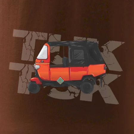 Tričko pre milovníkov cestovania s motívom taxi motorky z južnej Ázie- tuk-tuk. Oranžová motorka tuk-tuk by mala byť na tričku každého správneho cestovateľa. Ideálny darček pokiaľ si cestovateľ a máš rád napríklad Thajsko.