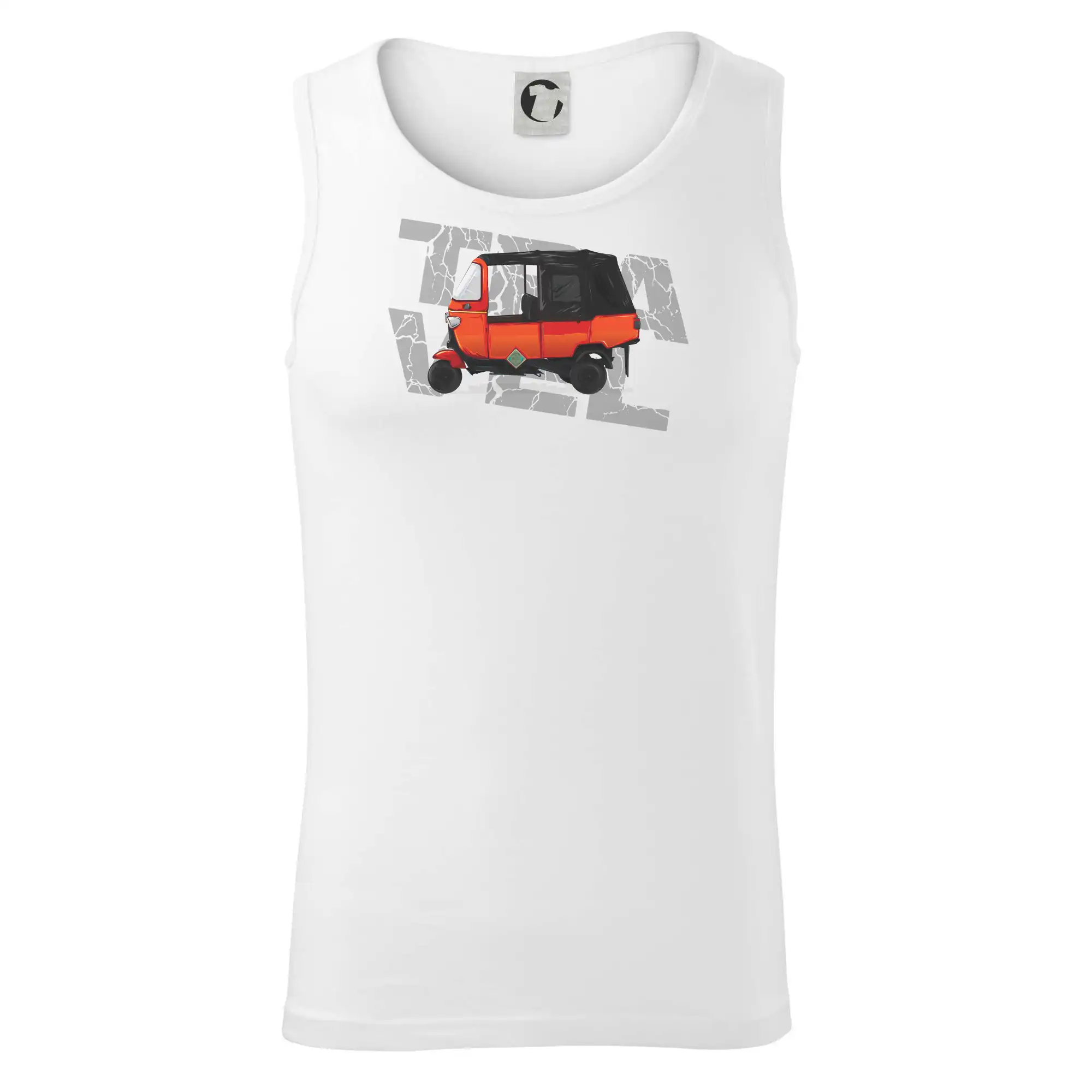 Tričko pre milovníkov cestovania s motívom taxi motorky z južnej Ázie- tuk-tuk. Oranžová motorka tuk-tuk by mala byť na tričku každého správneho cestovateľa. Ideálny darček pokiaľ si cestovateľ a máš rád napríklad Thajsko.