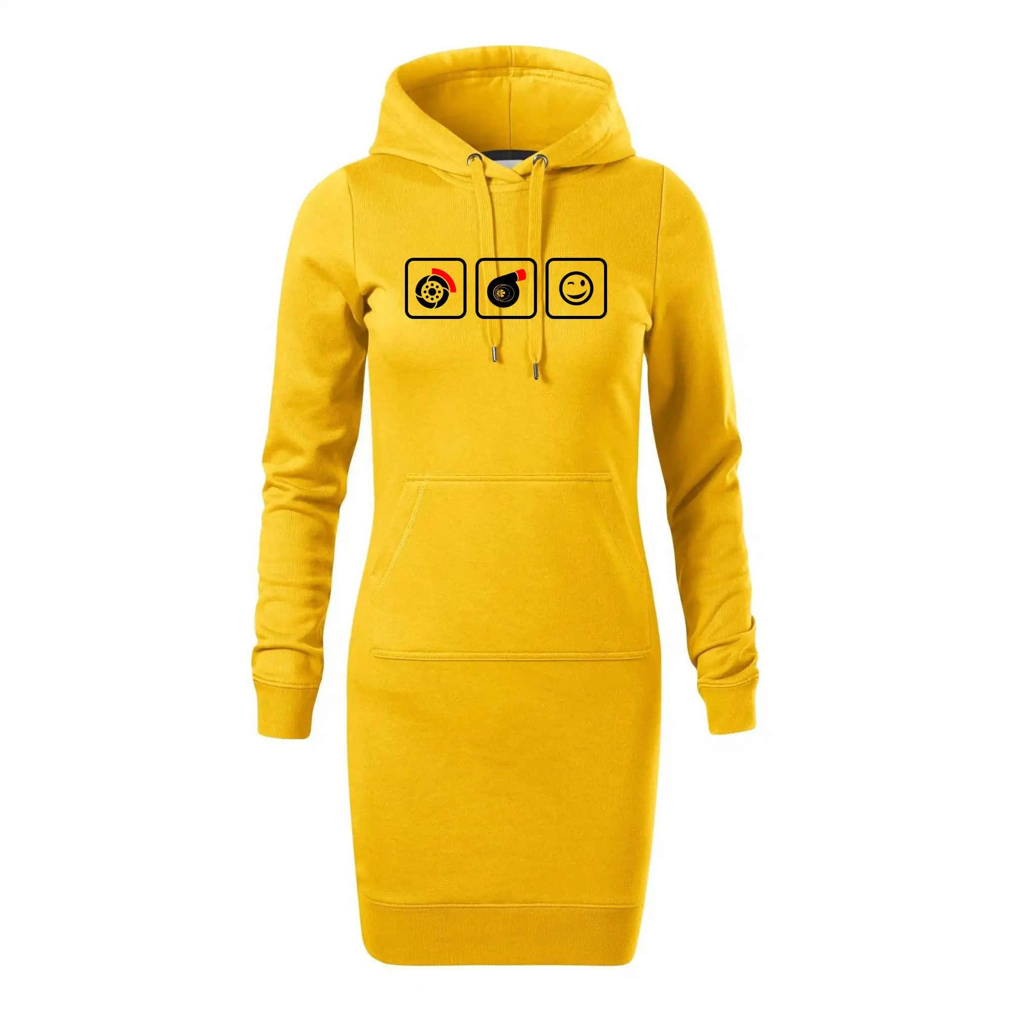 Dámske mikinové šaty MALFINI Snap 419 sú ideálnou voľbou pre ženy, ktoré hľadajú pohodlný a štýlový kúsok na voľný čas alebo každodenné nosenie. Ľahko vypasovaný strih s bočnými švami podčiarkuje ženskú siluetu, zatiaľ čo kapucňa s podšívkou a sťahovacou šnúrkou dodáva ležérny vzhľad. Šaty majú dĺžku nad kolená a sú vybavené našitým vreckom v štýle „klokanky“. Materiál je mäkký a príjemný na dotyk grâce à smesi bavlny a polyesteru s nepočesanou vnútornou stranou.