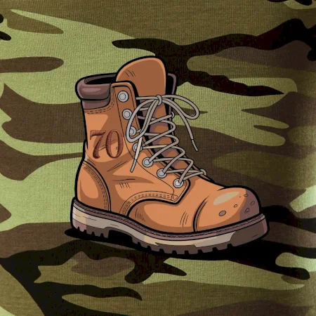 Tričko strednej gramáže vo farbách camouflage. Strih s bočnými švami. Lem priekrčníku z rebrového úpletu s prídavkom 5% elastanu. Vnútorná časť zadného priekrčníka začistená páskou vo farbe camouflage.