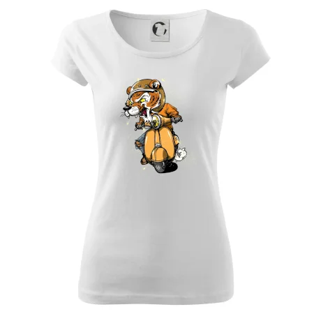 Tričko pre motorkára, na ktorom je tiger na skútri. Motorkárske tričko, kde je motorkár tiger, musí mať doma každý vášnivý motorkár. Tričko s tigromje vhodný darček pre motorkára.