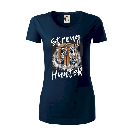Buď silný ako tiger. Hľadáš tričko so zvieracou tématikou a máš rád silné a dravé zvieratá? Tiger ako mačkovitá šelma je presne pre teba! Tričko s tigrom je doplnené nápisom "Tiger, strong hunter" a je vhodný darček pre milovníka prírody.