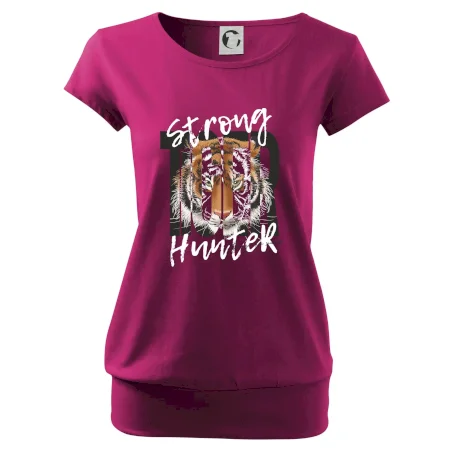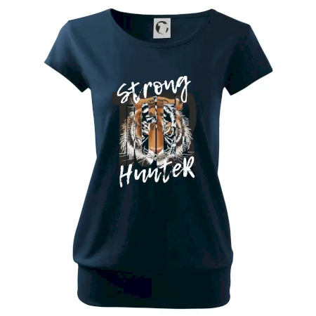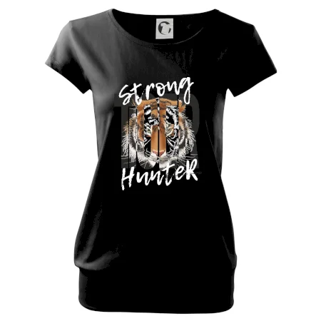 Buď silný ako tiger. Hľadáš tričko so zvieracou tématikou a máš rád silné a dravé zvieratá? Tiger ako mačkovitá šelma je presne pre teba! Tričko s tigrom je doplnené nápisom "Tiger, strong hunter" a je vhodný darček pre milovníka prírody.