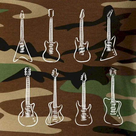 Tričko strednej gramáže vo farbách camouflage. Strih s bočnými švami. Lem priekrčníku z rebrového úpletu s prídavkom 5% elastanu. Vnútorná časť zadného priekrčníka začistená páskou vo farbe camouflage.