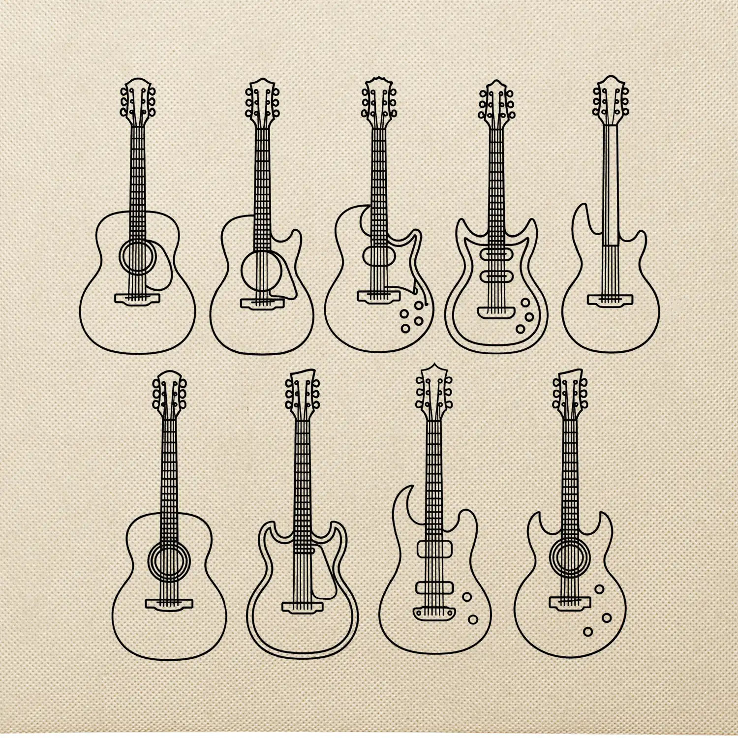 Typy gitár čiernej kresby