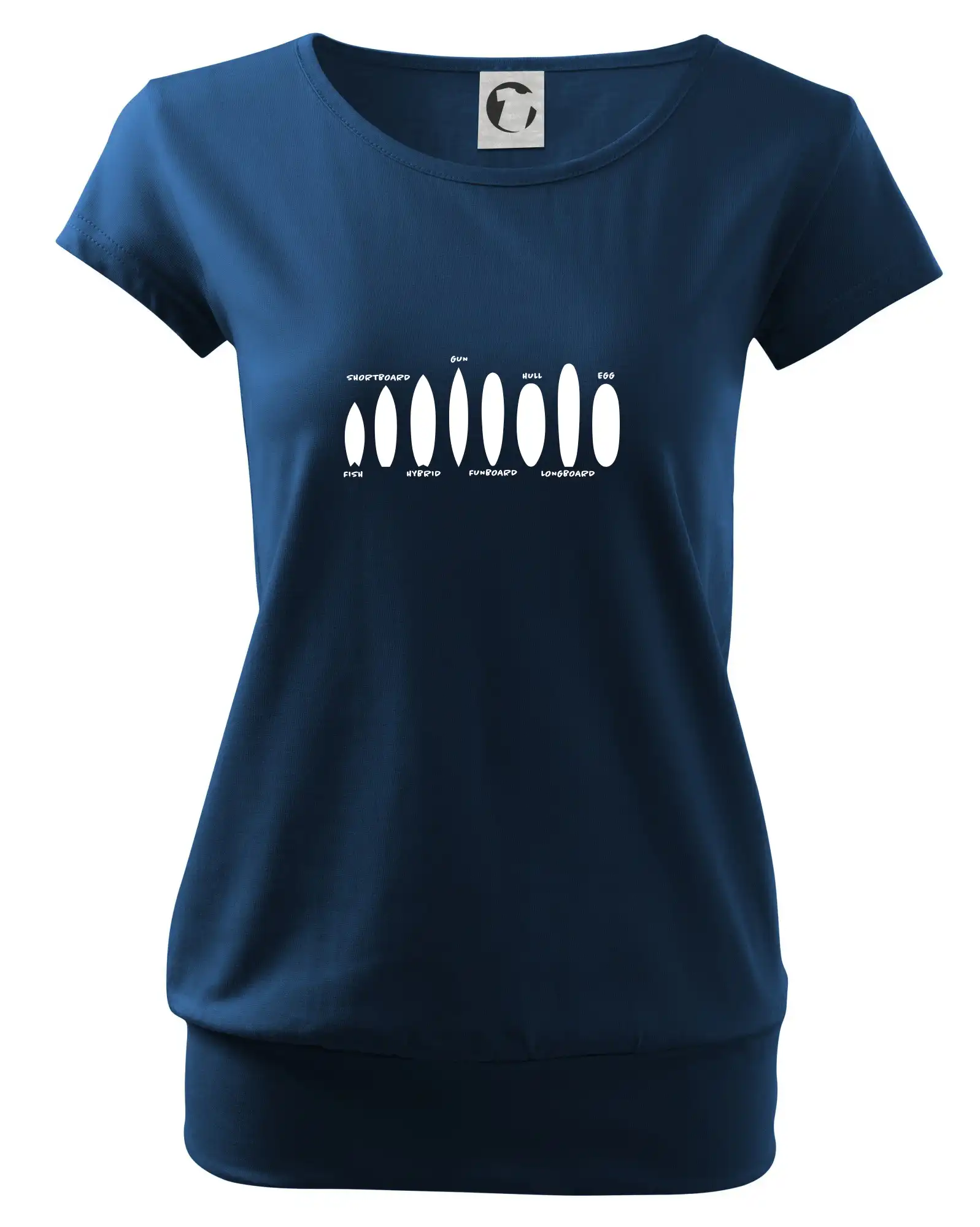 Trendové dámske tričko s veľmi krátkym rukávom, voľnejšieho strihu, v dolnom kraji všité do širokého lemu. Okrúhly priekrčník s úzkym lemom zo zhodného materiálu.