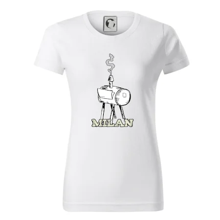 Dárek pro majitele udírny tričko s vlastním jménem pro to správné uzení. Jméno obdarovaného napiš do poznámky k objednávce. Skvělý doplněk na uzení k udírně.